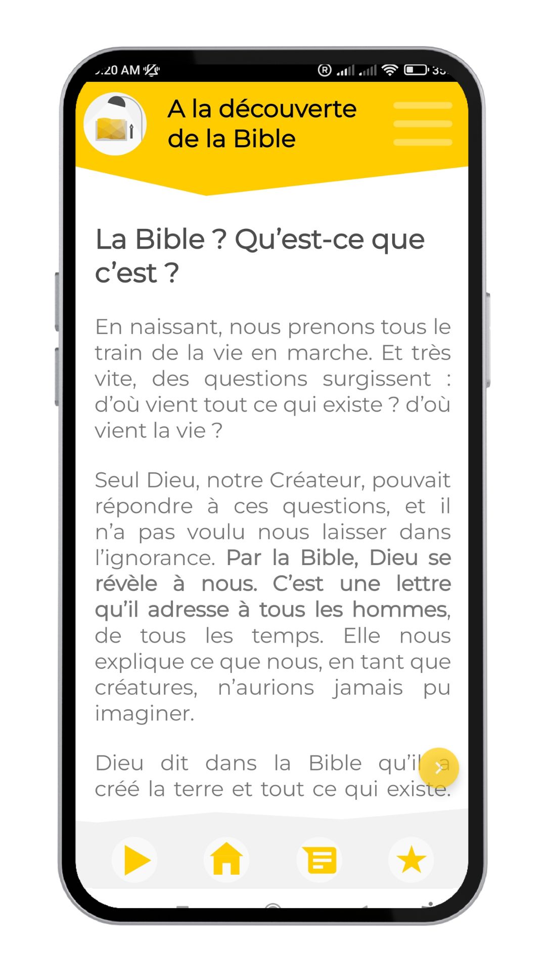 ★★★★★"Bonjour, un énorme merci 🥰 cette application est un trésor. Les quiz sont un vrai plus pour mémoriser la Parole."